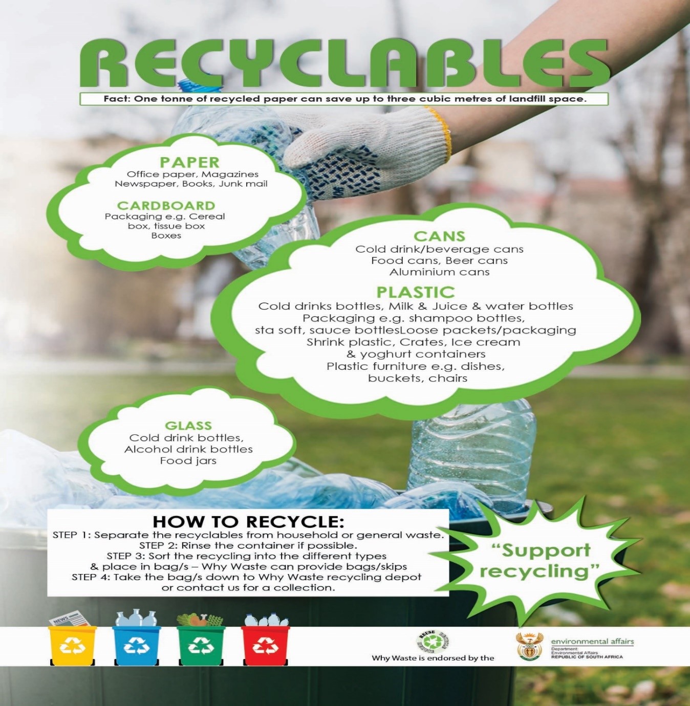 – Do your bit for the environment and start recycling TODAY! Currently, South Africa is not recycling enough! Let our sales team help you identify what CAN be recycled.